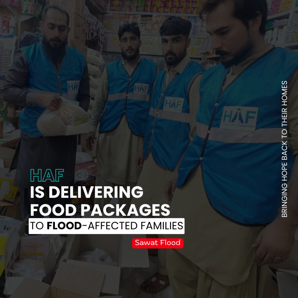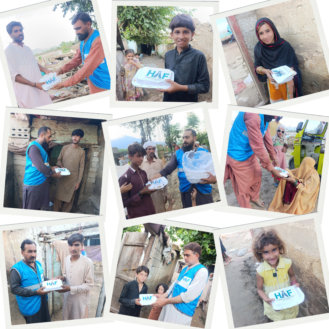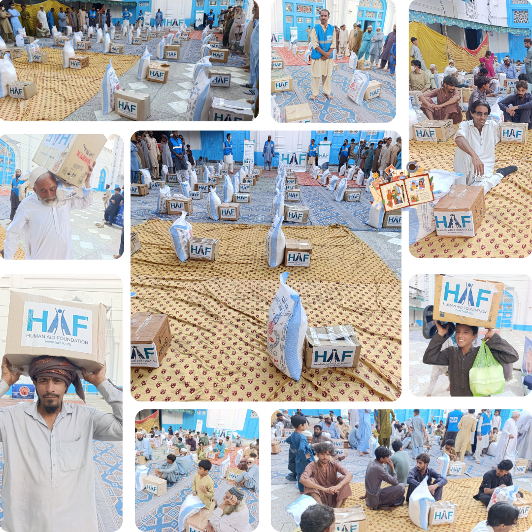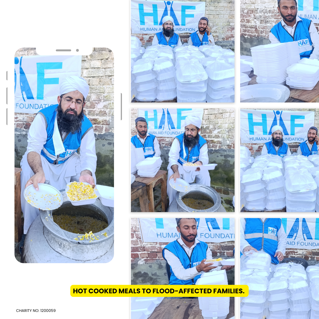 In 2025, the Human Aid Foundation stood beside flood-affected families across Pakistan — providing hot cooked meals and essential food packages to thousands of people who lost their homes and livelihoods.