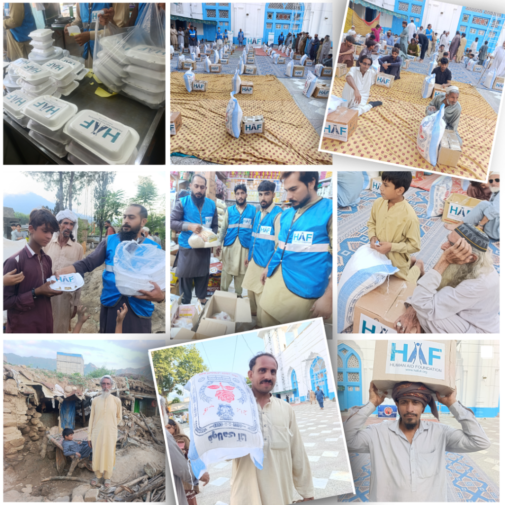 In 2025, the Human Aid Foundation stood beside flood-affected families across Pakistan — providing hot cooked meals and essential food packages to thousands of people who lost their homes and livelihoods.